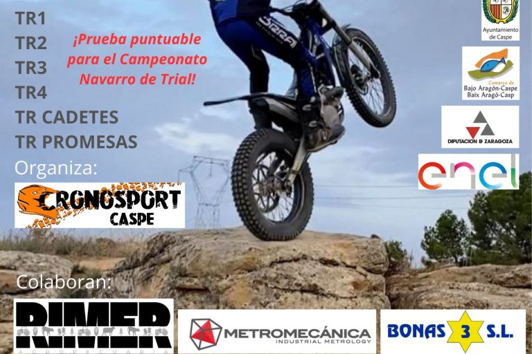 El próximo día 8 de marzo la A.D. Cronosport organizará en la localidad zaragozana de Caspe, la tercera prueba puntuable para el Campeonato de Aragón de Trial 2026