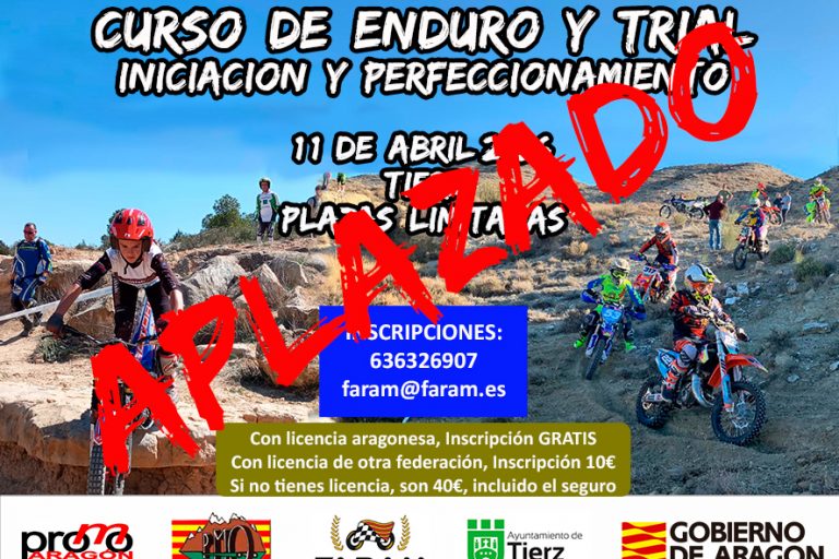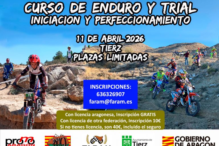 El sábado día 11 de abril, se realizará un cursillo de enduro en las instalaciones del Circuito de Tierz (Huesca) para niñas y niños. Para más información e inscripciones, enviar un mail a faram@faram.es, o llamando al 636326907. Antes del jueves 9 de abril. PLAZAS LIMITADAS. Precios: Si tienes licencia aragonesa, Inscripción GRATIS Con licencia…