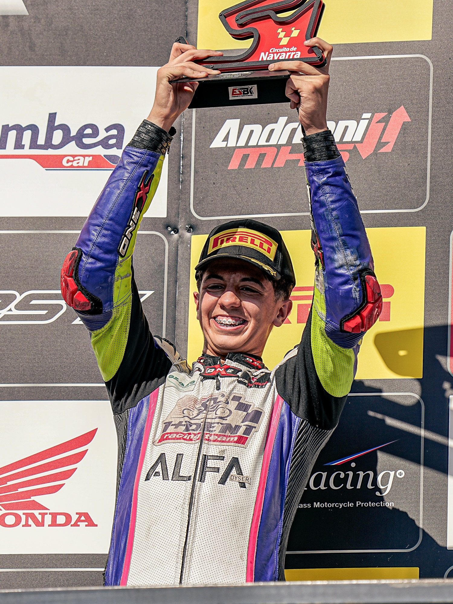 Este fin de semana, el piloto aragonés Miguel Bernal volvió a demostrar su talento y garra en el circuito de Navarra, firmando una actuación sobresaliente en la cuarta cita del Campeonato de España de Superbike (ESBK) en la categoría de SSP300.
