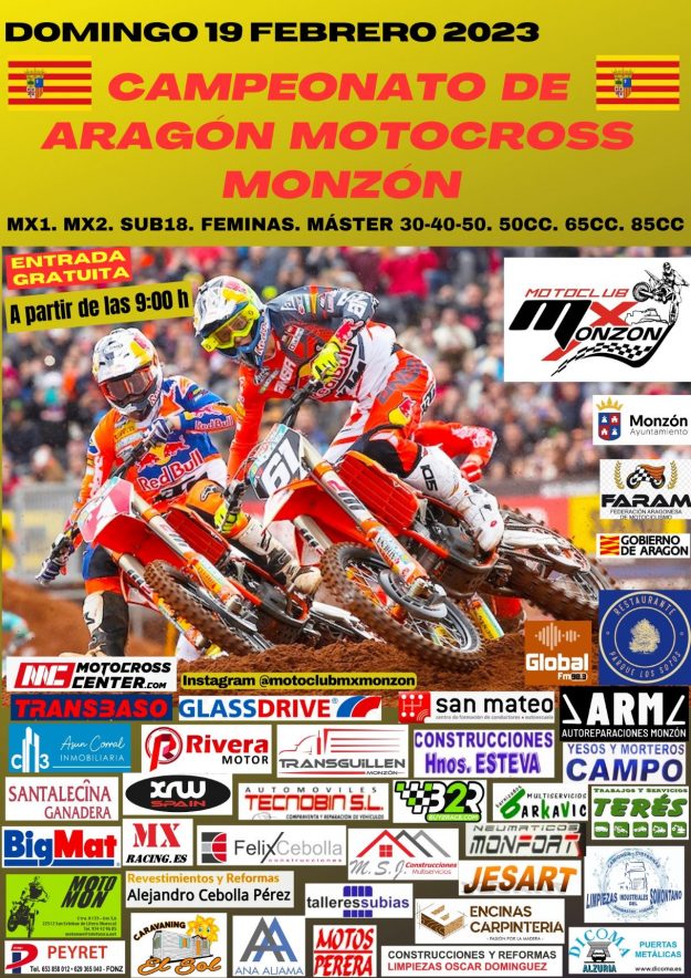 El próximo domingo día 19 de febrero se celebrará la segunda carrera puntuable para en campeonato de Aragón de Motocross, en la localidad oscense de Monzón.