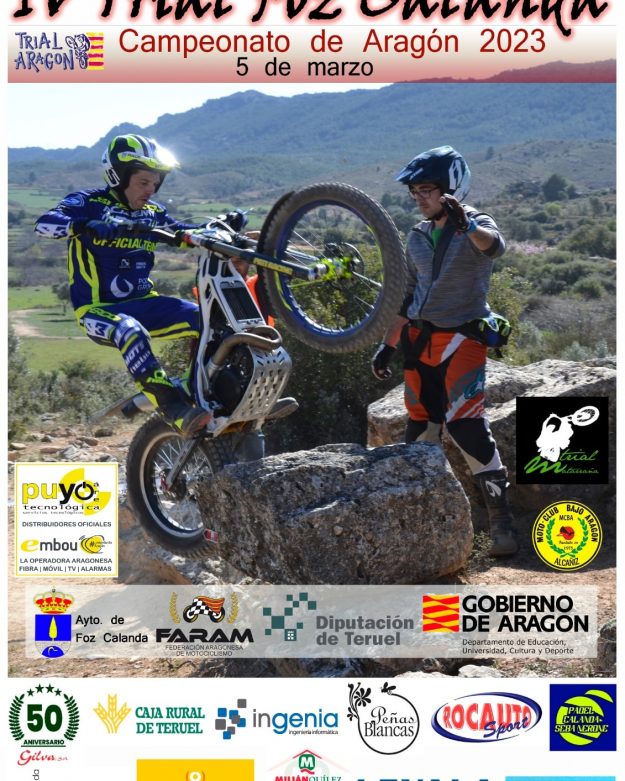 El próximo domingo día 5 de marzo, en la localidad turolense de Foz Calanda, se celebrará la primera prueba puntuable para el Campeonato de Aragón de Trial 2023.
