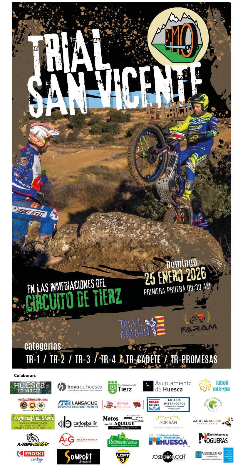 El próximo domingo día 25 de enero, la Peña Motociclista Oscense, en la localidad oscense de Tierz. Organizará el «47º Trial de San Vicente» primera prueba puntuable para el Campeonato de Aragón de Trial 2026.