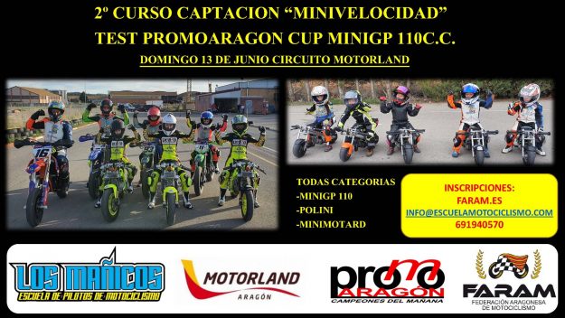 El próximo dia 29 de agosto, se celebrará en el Circuito de Samper de Calanda, una prueba puntuable para la Copa PromoAragón MiniGP 110, Campeonato de Aragón y Campeonato Norte de Minivelocidad.